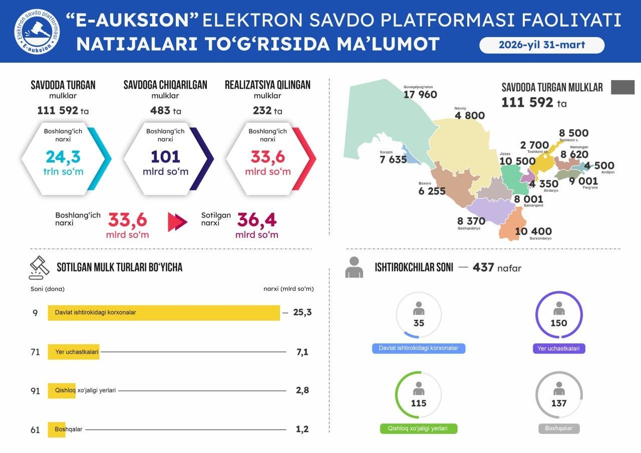 Оммавий савдоларга чиқарилган давлат активларини виртуал кўриш