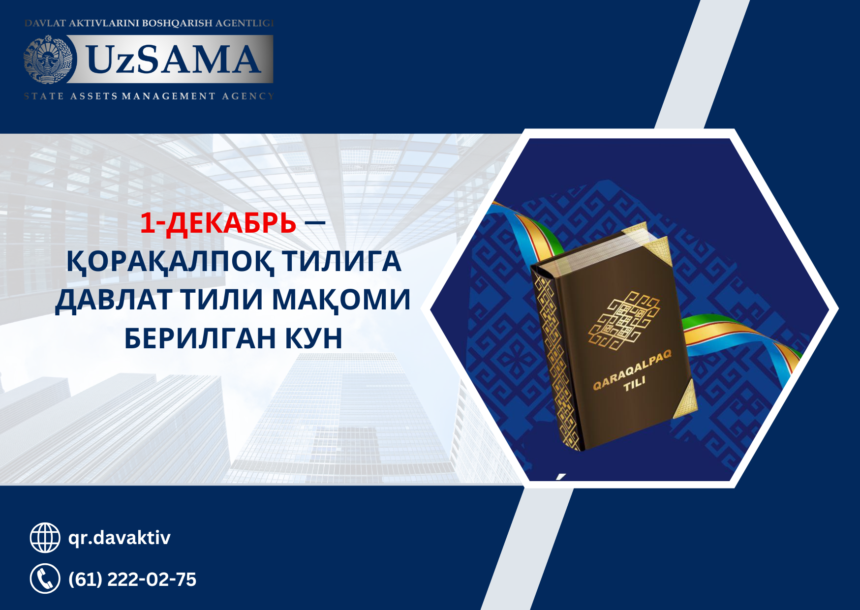 1-ДЕКАБРЬ — ҚОРАҚАЛПОҚ ТИЛИГА ДАВЛАТ ТИЛИ МАҚОМИ БЕРИЛГАН КУН